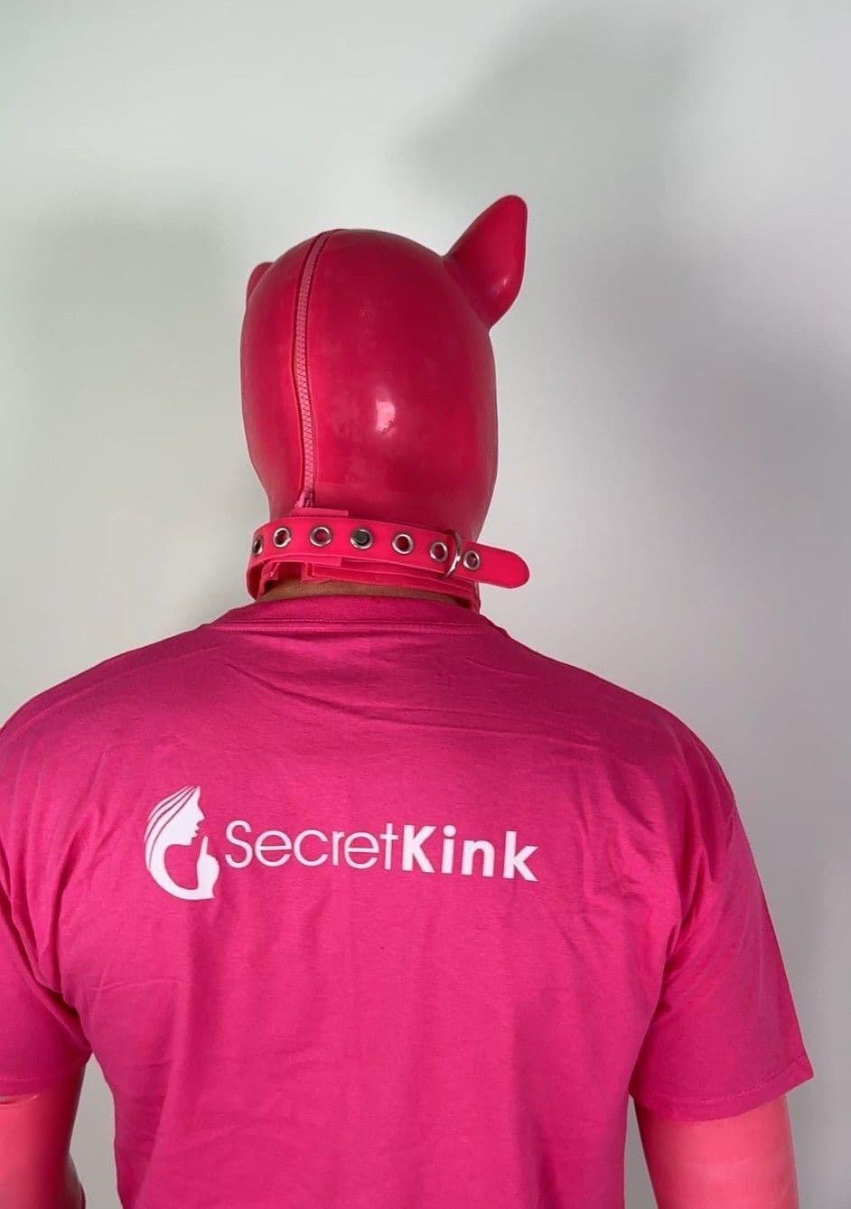Extra Thick Pink Latex Pig Hood with Padlock Collar
